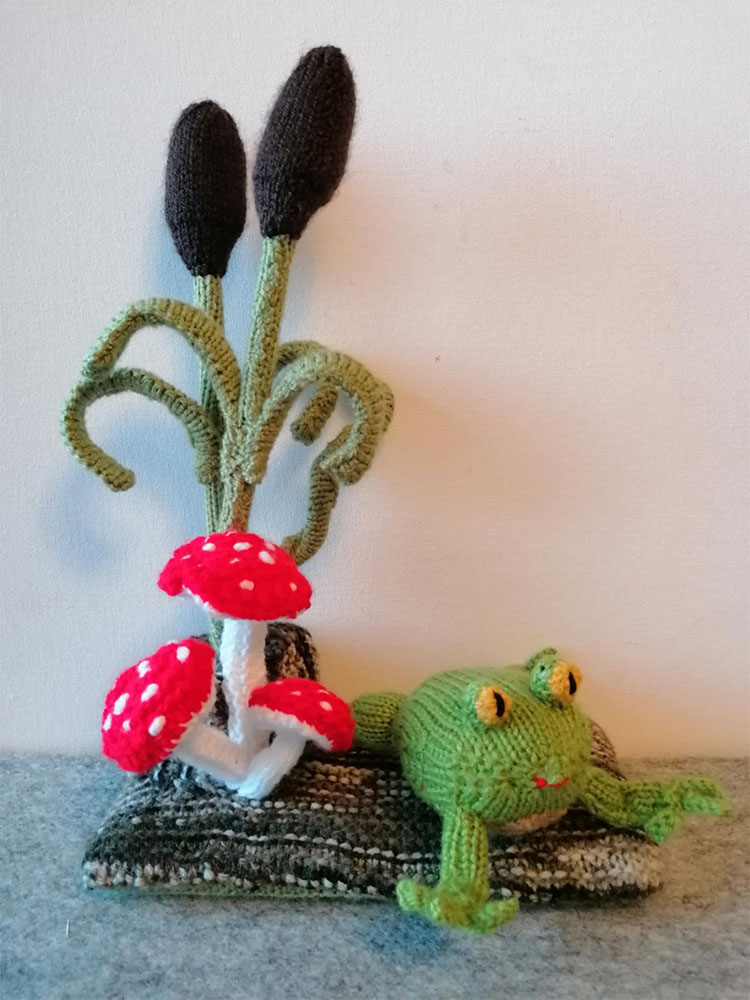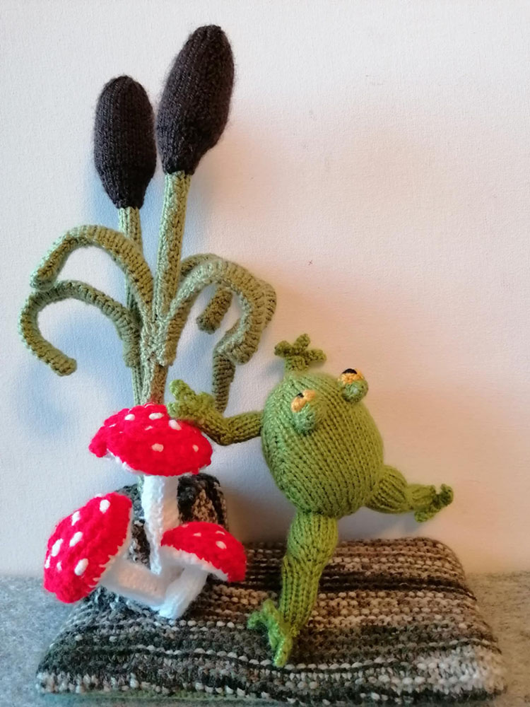 Frog on the riverbank Knitting Pattern with step by step instructions, colour photographs and useful tips.